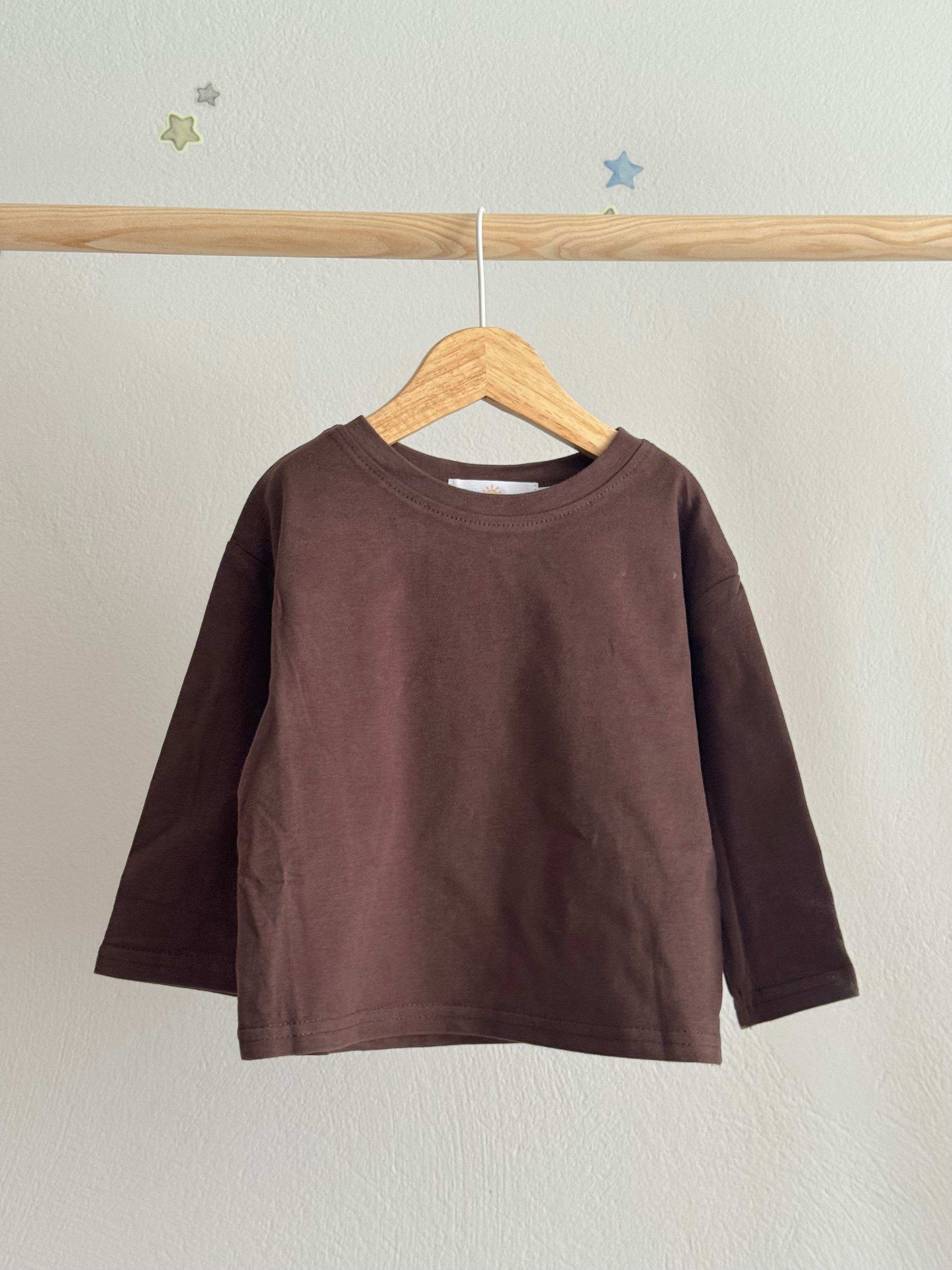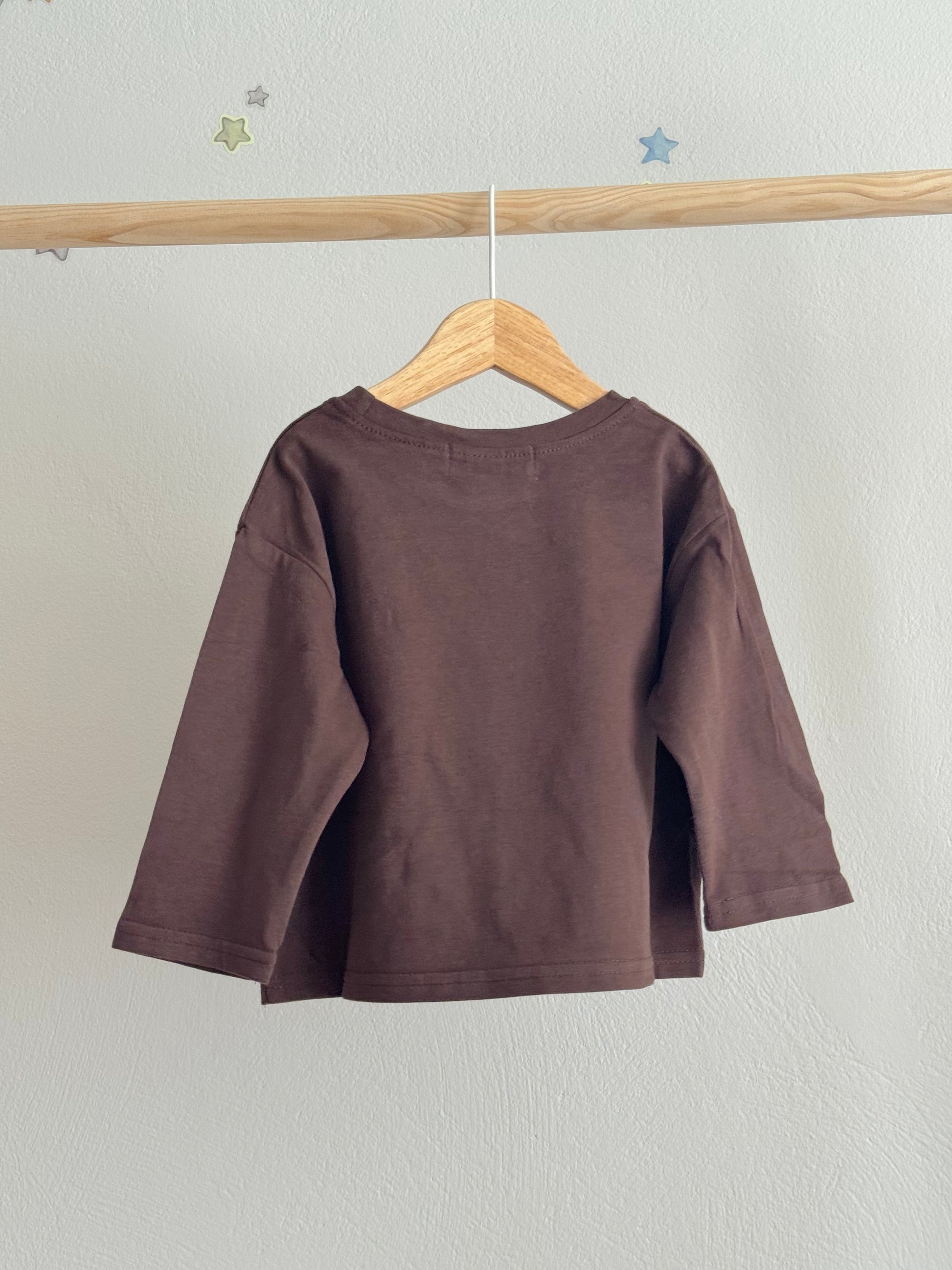 Το μαλακό Bibie μπλουζάκι σε σοκολατί απόχρωση είναι ιδανικό για κάθε cozy εμφάνιση, με χαλαρή γραμμή, ριχτούς ώμους και γυριστά μανίκια για extra στυλ.