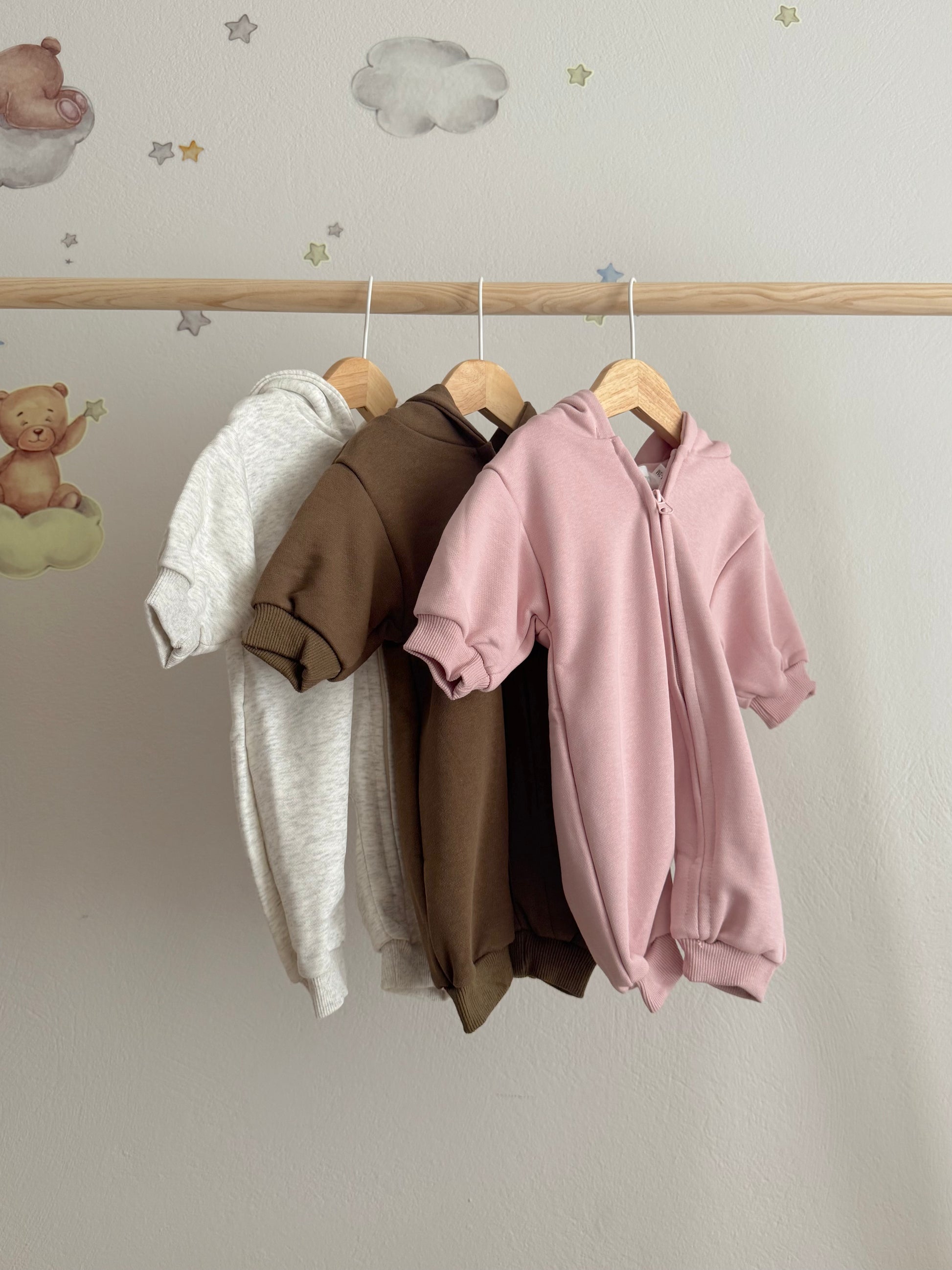 Το Nest ολόσωμο φορμάκι προσφέρει ζεστασιά και άνεση για κάθε στιγμή. Με κουκούλα και φερμουάρ, είναι η ιδανική επιλογή για βόλτες και χαλάρωση. Διαθέσιμο σε γκρι, ροζ και καφέ αποχρώσεις, αυτό το φορμάκι είναι φτιαγμένο από απαλό ύφασμα που εξασφαλίζει ελευθερία κίνησης.