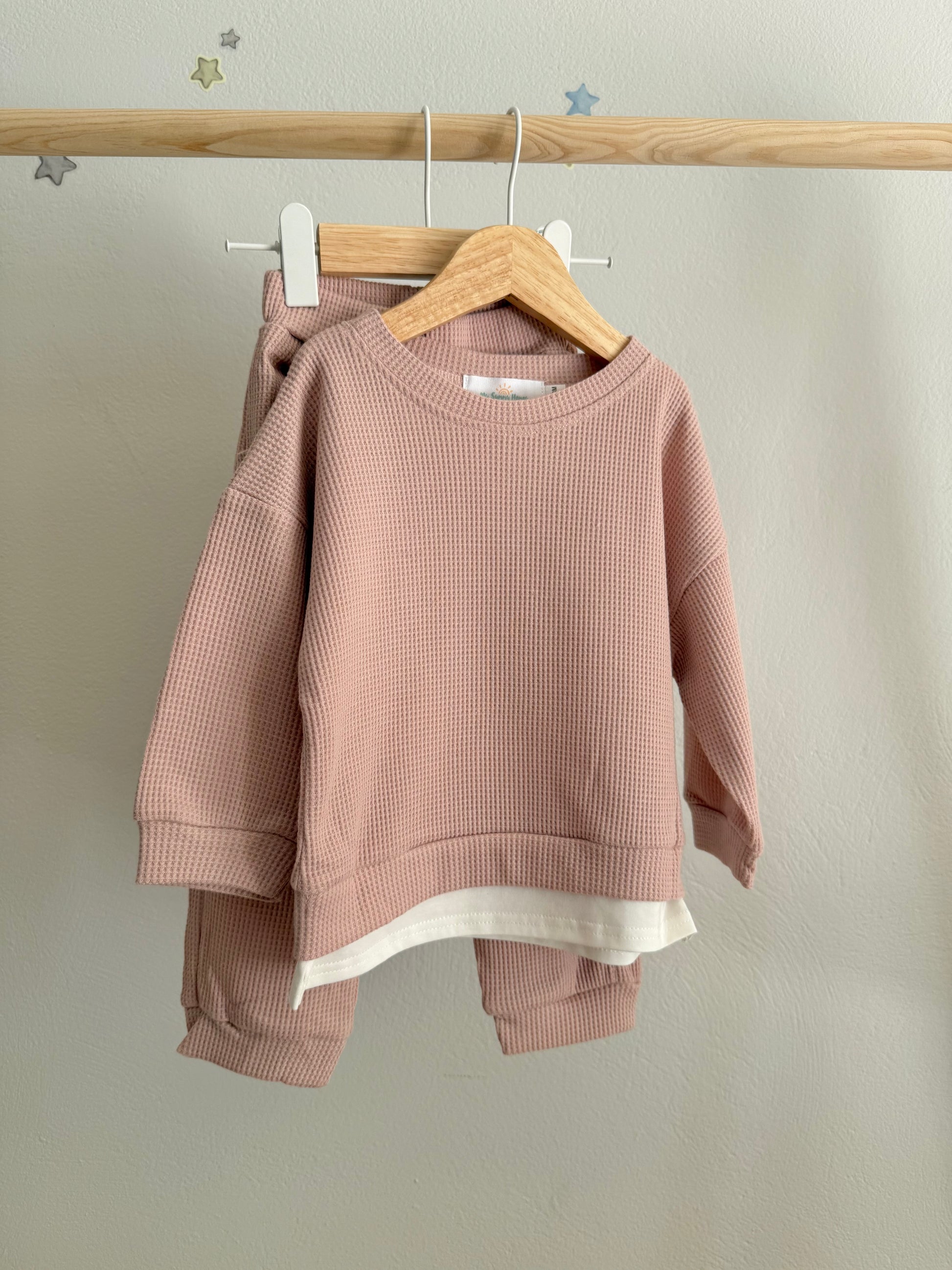 Το σετ φόρμας Twinkle, διαθέσιμο σε μπεζ, μπλε, πράσινο και ροζ, είναι η ιδανική επιλογή για άνεση και στυλ. Μαλακό και ζεστό, συνοδεύει τα μικρά σας σε κάθε τους περιπέτεια.