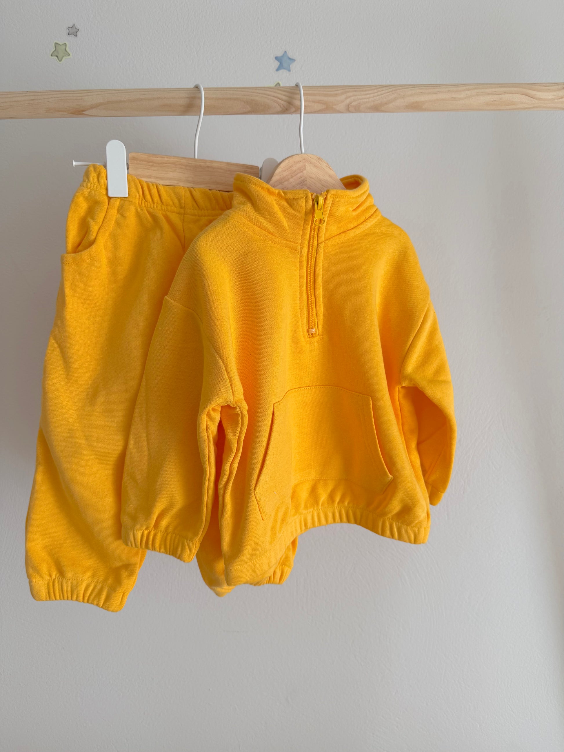 Το σετ φόρμας Zippy, διαθέσιμο σε γκρι και κίτρινο, με φερμουάρ και τσεπούλα, είναι ι φτιαγμένο από μαλακό ύφασμα, προσφέρει ζεστασιά και πρακτικότητα για κάθε μέρα.